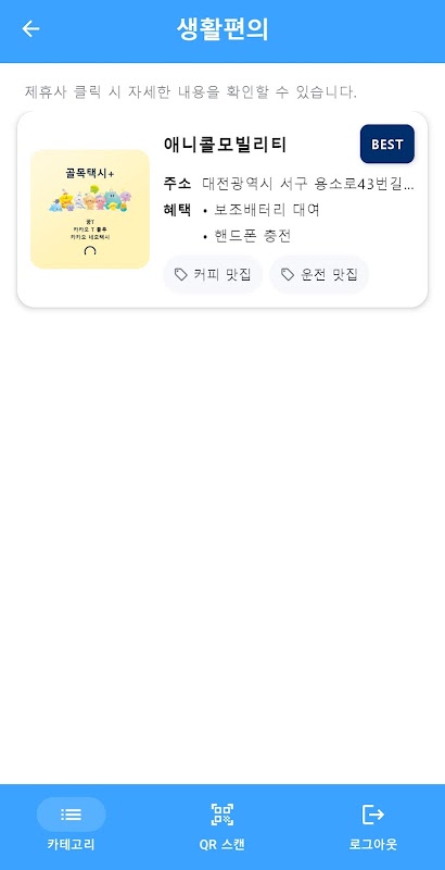 Die mit Anycall Mobility verbundene Anwendung „Golmok Taxi +“ ist eine spezielle App, die es den mit Anycall Mobility verbundenen Fahrern ermöglicht, einfach nach Produkten und Dienstleistungen der verbundenen Unternehmen zu suchen und diese zu nutzen und die Vorteile der verbundenen Fahrer an einem Ort zu verwalten.