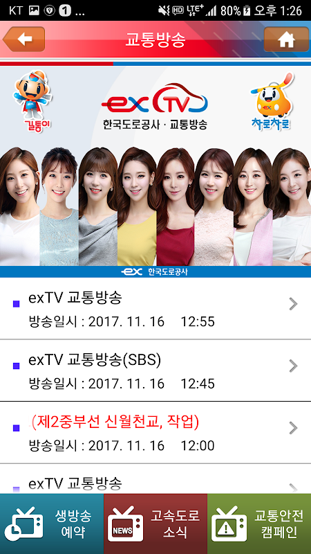 6. 생방송 예약을 통한 실시간 교통방송 및 교통관련 영상(고속도로 뉴스, 교통안전 캠페인)제공