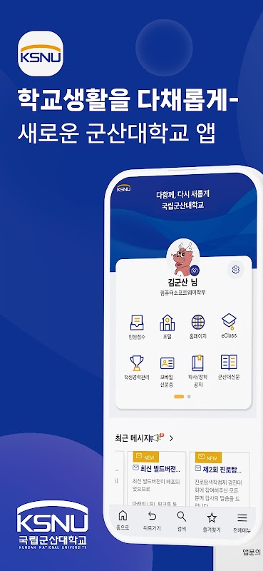 Diese App wurde entwickelt, um das Universitätsleben der Mitglieder der Kunsan National University komfortabler und effizienter zu gestalten.