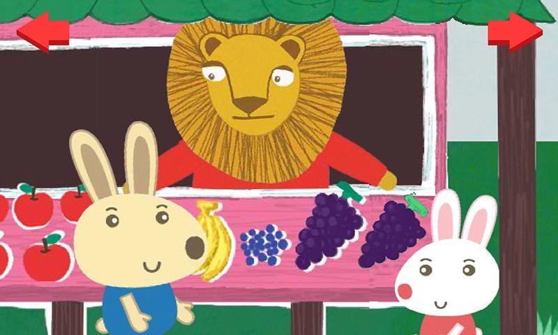 과일가게에 과일을 사러 간 토끼남매 토미와 라비.