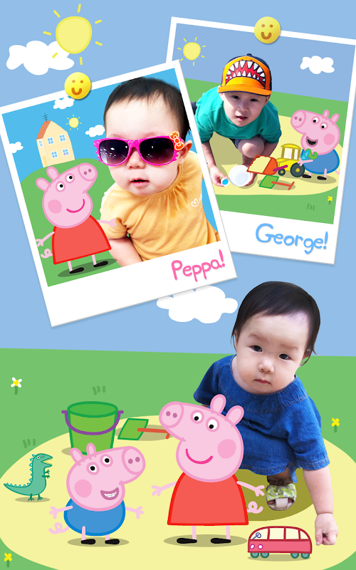 ► Die Kamera verfügt über einen Charakter, der ein Bild mit Pfeffer und George und Freunden nehmen.