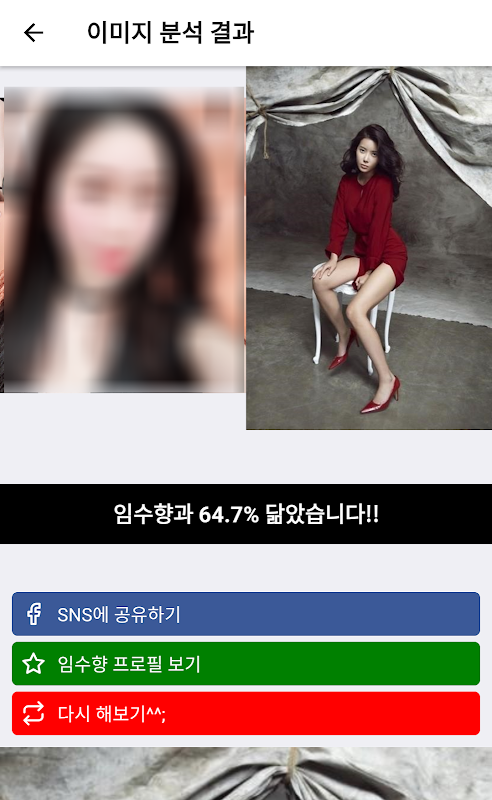찾은 후 셀럽의 사진과 바로 비교 가능