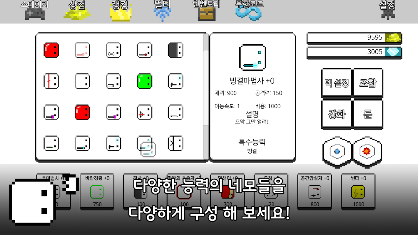 자신이 스테이지를 깨면서 찾아낸 최고의 조합을 이용해 상대방과 한판 붙으세요!