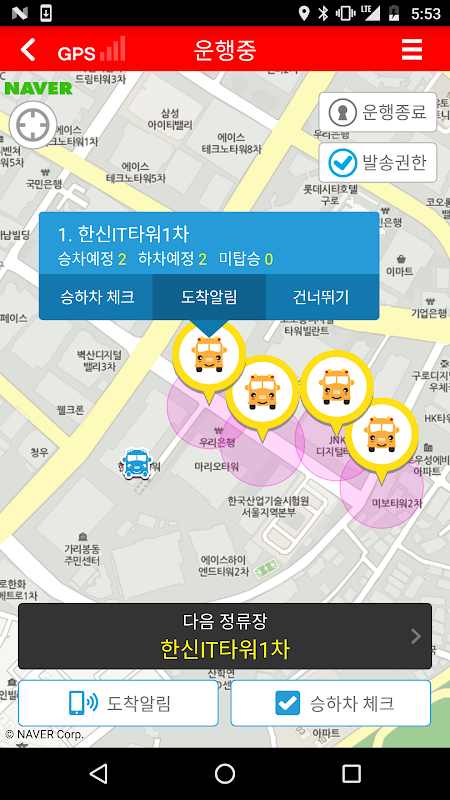 불 필요한 시간 소요를 최소화 할 수 있도록 지정 정류장 도착전 알림 기능 제공.