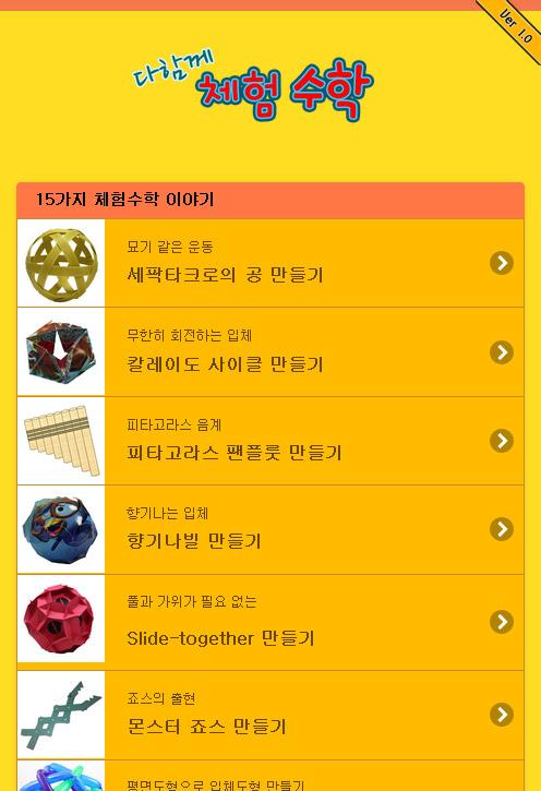 현재 제작과 관련된 10개의 체험수학과 5개의 수학게임을 소개하고 있습니다. 그리고 앞으로 더 많은 정보를 제공할 예정입니다.