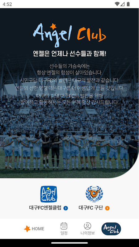 Nach freiwillig Daegu FC Gewebe ist die App für den Miniclub Mitglieder Daegu FC Engel.