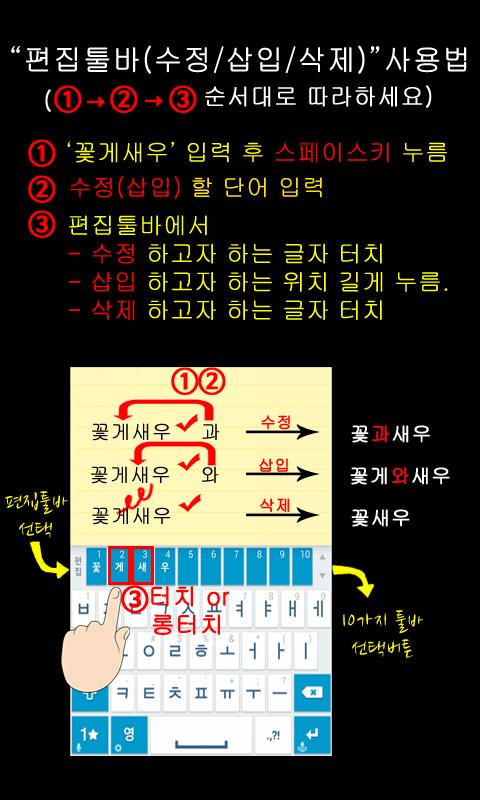 1. Back Key를 이용하여 오타를 일일이 지울 필요없이 자판을 간단하게 swype(밀기)만하면 자동으로 오타를 수정하는 기능 추가 (Typo Correction)