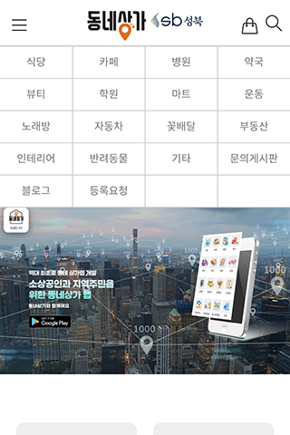 동네상가 성북 어플은 소상공인과 지역주민을 위해 개발된 어플입니다. 다운로드 받으셔서 지역 정보를 한눈에 공유하세요.