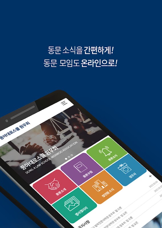 동아대학교 법학전문대학원 원우/동문의 소식과 정보를 열람할 수 있는 모바일 수첩 어플리케이션입니다.