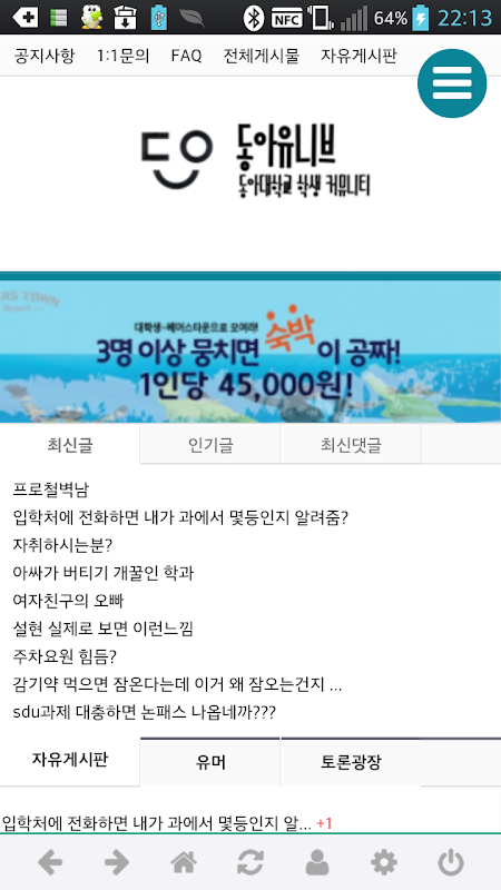 동아유니브는 기존 동아대학교 커뮤니티의 단점들을 보완하기위해 2015년 1월에 만들어진 커뮤니티입니다.