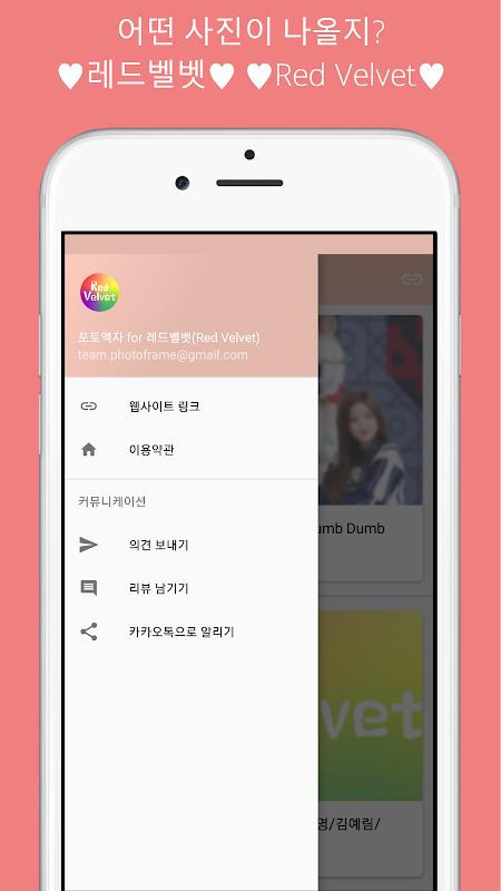 단 몇 번의 터치만으로 레드벨벳 포토카드를 만들어 드립니다.