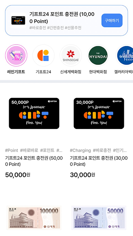 1) Eine App, in der Sie Geschenkgutscheine und Gifticons verschiedener beliebter Marken wie Culture Land, mobile kulturelle Geschenkgutscheine, Happy Money, Book & Life, Starbucks usw. finden können.
