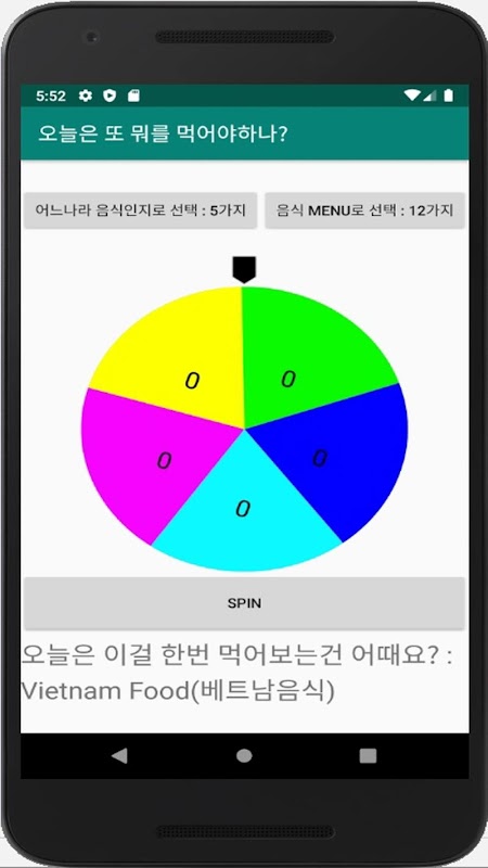 이럴때, 더이상 고민한 후에 어제랑 똑같은 음식을 먹지말고, 차라리 룰렛으로 음식을 선택해 보는건 어떨까요? 스트레스도 줄고 재미도 있고 일석이조일듯 하네요.