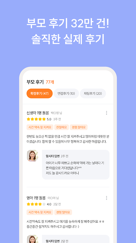 Über 맘시터- 아이돌봄, 산후관리, 베이비시터, 학습, 가사