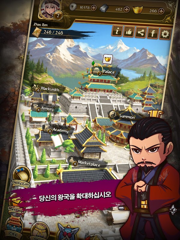 삼국시대의 영웅들을 소환하고, 당신의 전략과 기술을 현명하게 구사하여, 한나라의 혼란기에 왕국을 통합하기 현실적 전략으로 전쟁터를 이끌어야 합니다. 퍼즐 게임 영역에 있는 3개 이상의 아이템을 매치하여 적에 대해 필요한 능수란한 전쟁을 시작하십시오