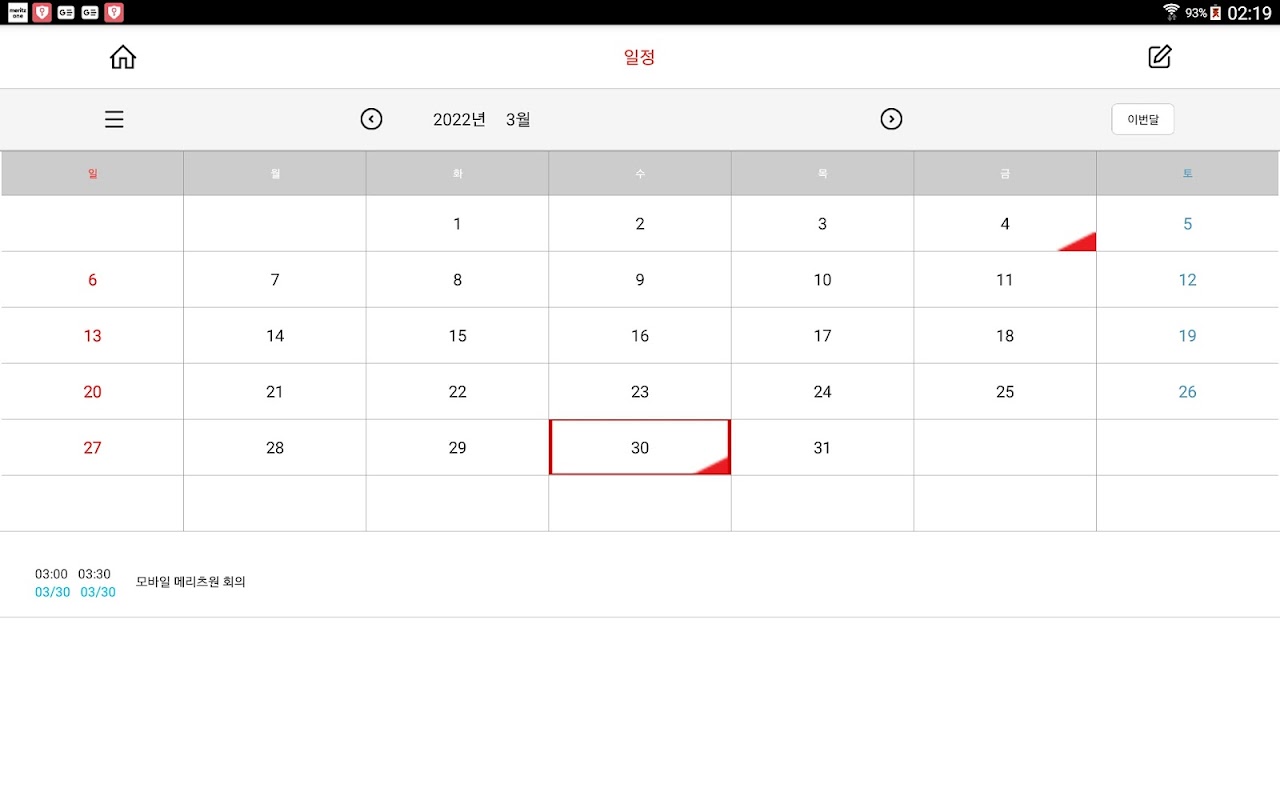 Über 메리츠금융그룹포탈(임직원용 테블릿)