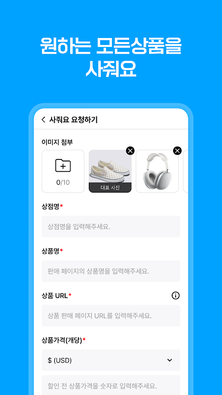 - 사진 : 배송신청서, 1:1문의, 핫딜, 후기 등 이미지 첨부
