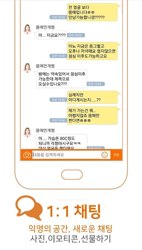 1:1 대화 , 익명대화방 등
