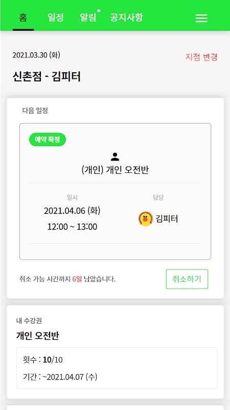 Reservierungssystem für Mitglieder der Move Golf Academy