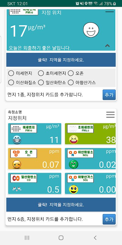 - 필요한 미세먼지 카드는 계속 추가할 예정입니다.