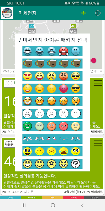 + 미세먼지 레벨에 따라 표시되는 아이콘 세트 10종 수록