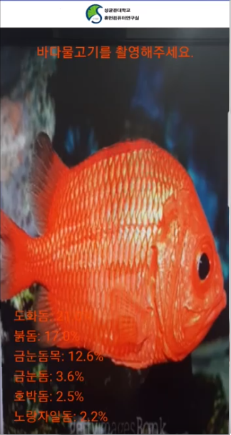 ◎ '바다물고기 인식 들어가기' 버튼을 클릭