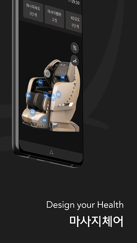 Ändern Sie den Status des Massagesessels, wie z. B. Massageintensität und -ort, bequem auf dem Handy