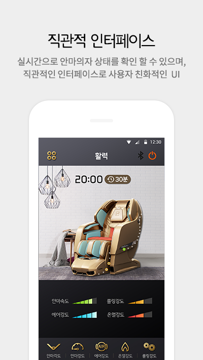 Ändern Sie den Status des Massagesessels, wie z. B. Massageintensität und -ort, bequem auf dem Handy