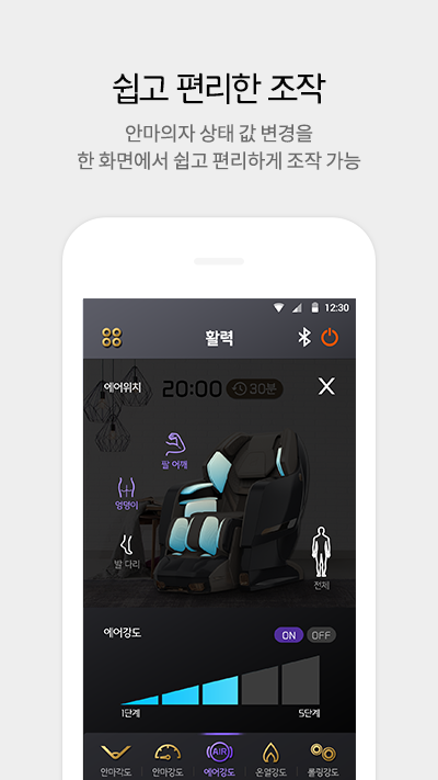 Ändern Sie den Status des Massagesessels, wie z. B. Massageintensität und -ort, bequem auf dem Handy