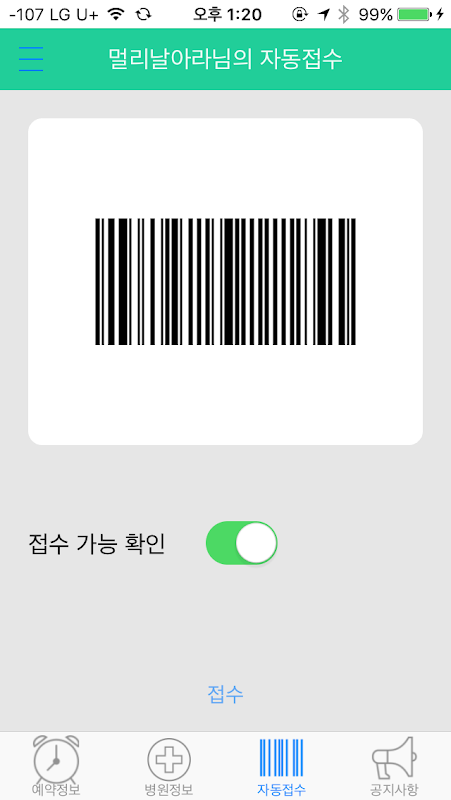 발급된 바코드들 이용하여 병원에서 자동으로 접수를 할 수도 있습니다.
