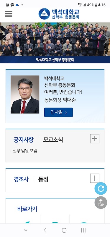 Baekseok University School of Theology Alumni Association Engagierter Service, Alumni-News, Geschichte, Galerie, Statuten, Spenden.