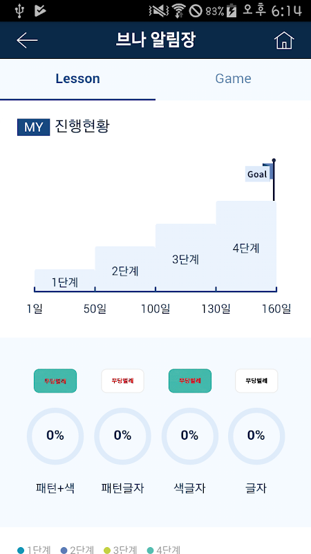 부모님이 모바일 상으로 160일간의 학습 진도와 아이의 인지 정도를 실시간으로 파악해볼 수 있는 학습상태 분석 기능입니다.
