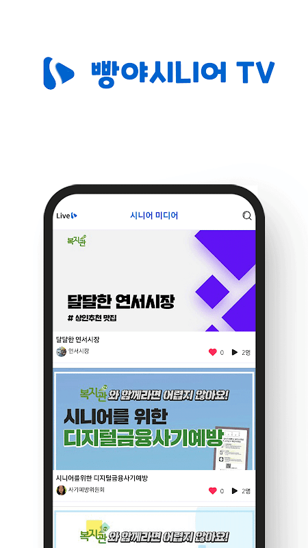 빵야시니어티비 - Senior TV , 시니어, 라이브 방송, 인플루언서, 복지관