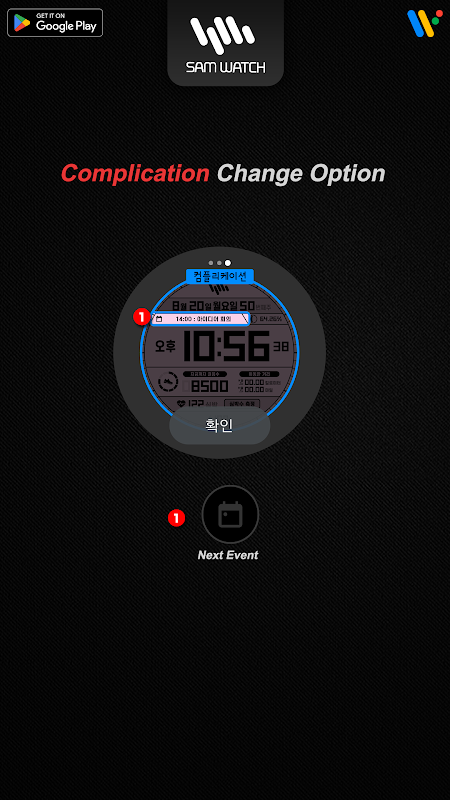 *Die Smartphone-App ist eine zusätzliche App in der Watchface-App, die die Download-Anleitung erklärt. Es kann sich vom Watchface-Screenshot der Smartphone-App und dem tatsächlich heruntergeladenen Watchface-Screenshot unterscheiden. Die meisten Watchface-App-Produkte von SamWatch enthalten Apps für Smartphones.