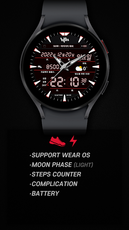 *Die Smartphone-App ist eine zusätzliche App in der Watchface-App, die den Download-Guide erklärt. Es kann sich vom Watchface-Screenshot der Smartphone-App und dem tatsächlich heruntergeladenen Watchface-Screenshot unterscheiden. Die meisten Watchface-App-Produkte von SamWatch umfassen Apps für Smartphones.