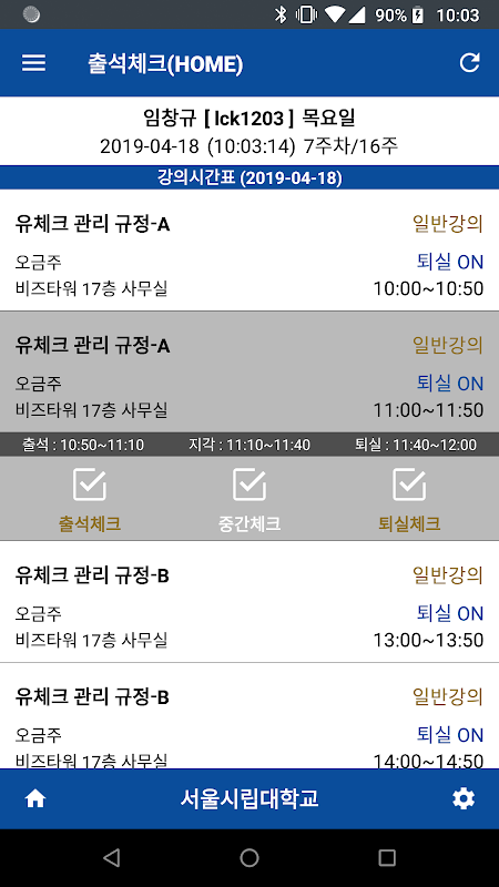 서울시립대학교 전자출결(학생용) 1.0.10