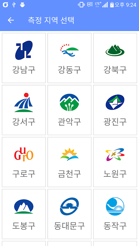 서울시의 각 지역구별 대기환경 정보를 제공합니다.