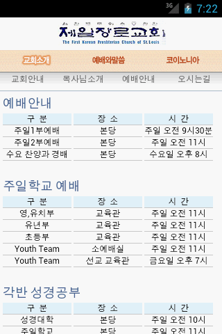 세인트루이스 한인 제일 장로 교회 모바일 홈페이지 App입니다.