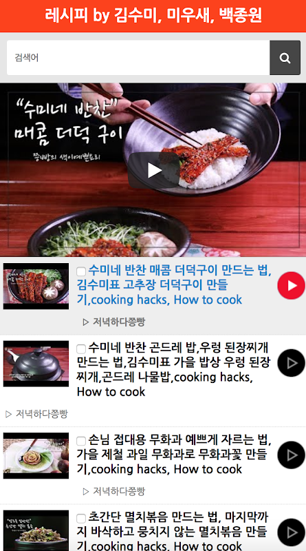 수미네반찬 & 요리 레시피를 편하게 다시볼 수 있습니다