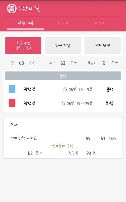 '수학의 길' 학원의 학부모앱입니다.아이의 출결/학습 상태, 월별 학업 보고서까지모든 정보들을 앱을 통해 실시간으로 받아보실 수 있습니다.