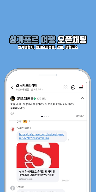 Singapore travel information sharing open chat, Naver Open Talk shortcut app.