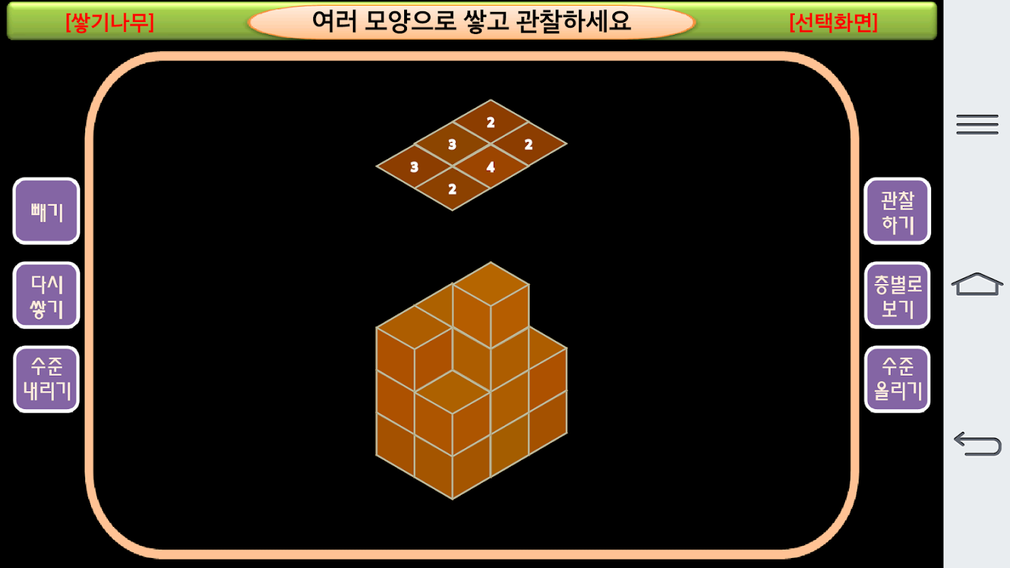 쌓기나무 관련 교수-학습을 지원하기 위한 어플입니다. 가급적 '쌓기나무(수학, 입체도형, 각기둥, 각뿔, 전개도)' 을 설치하시기 바랍니다.