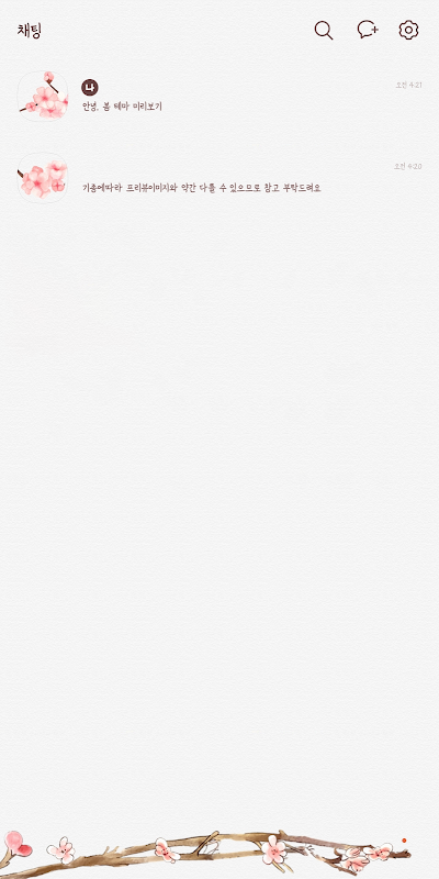 봄 느낌이 가득한 카카오톡 테마입니다