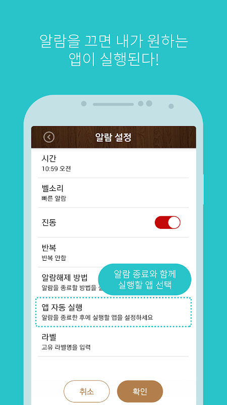 알람 후에 자동 실행될 앱이나 기능도 설정하실 수 있습니다.