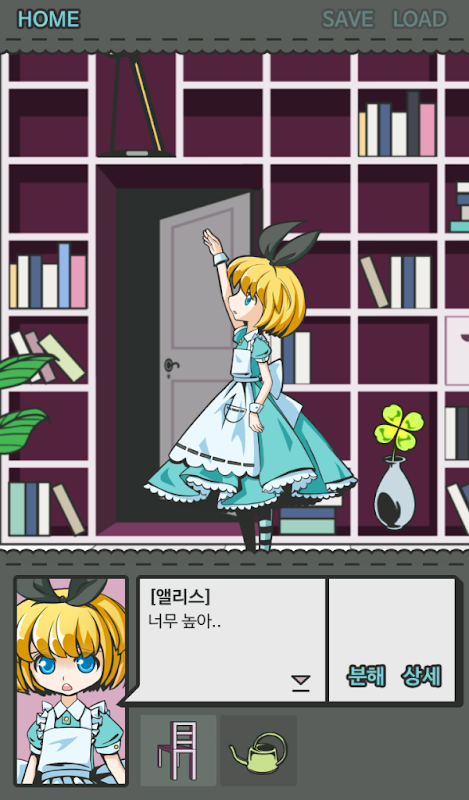 수상해 보이는 곳을 터치해서 조사하거나 아이템을 모아서 앨리스를 탈출시키세요.