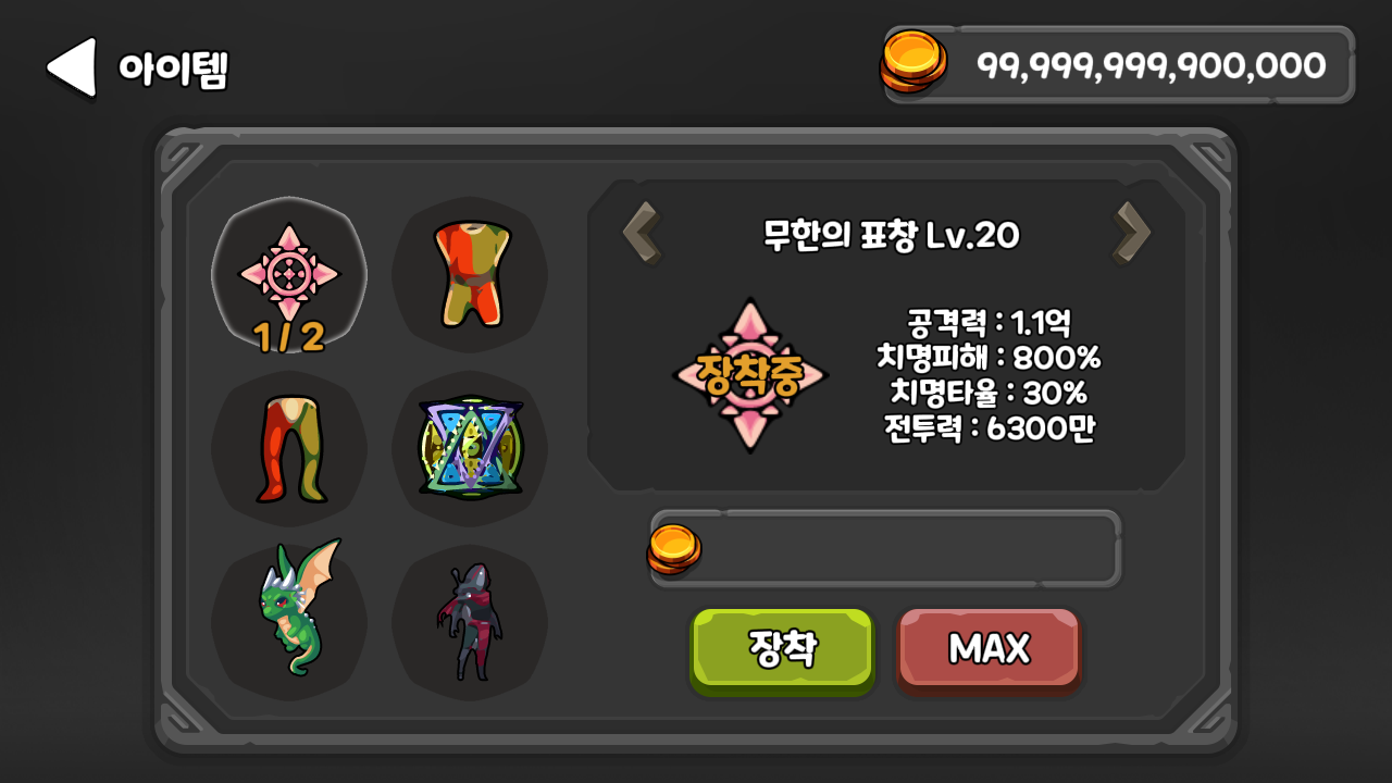 Zu Hause können Sie mit Geld Schaden, Angriffsgeschwindigkeit, kritischen Schaden und kritische Trefferwerte verdienen.