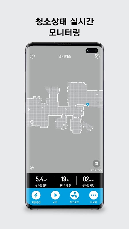 Starten / Stoppen Sie die Reinigung, ändern Sie den Reinigungsmodus und laden Sie das Gerät auf. Sie können den aktuellen Standort des Roboters, den Bewegungspfad, den gereinigten Bereich und den verbleibenden Reinigungsbereich in Echtzeit überprüfen.