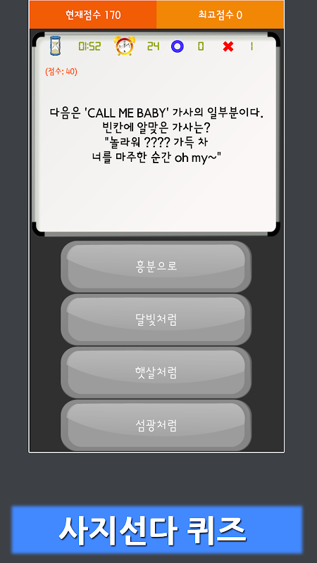*. 엑소 연상 퀴즈로 구성되어 있습니다.