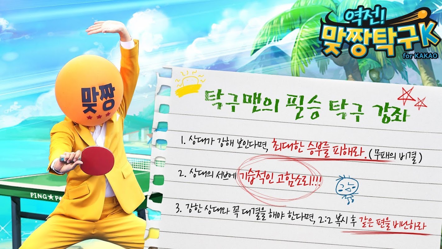 찰진 스매싱의 상쾌함! 실시간 대전 국민 모바일 게임! “역전! 맞짱탁구K for kakao”