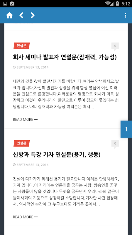 - 3분 스피치, 감사인사, 개회사, 건배사, 격려사, 기념사, 소감문, 송년사, 송별사, 신년사, 연설문, 웅변원고, 이임사, 자기소개, 주례사, 추모사, 축사, 취임사, 퇴임사, 환영사, 후보연설, 훈시문, 기타
